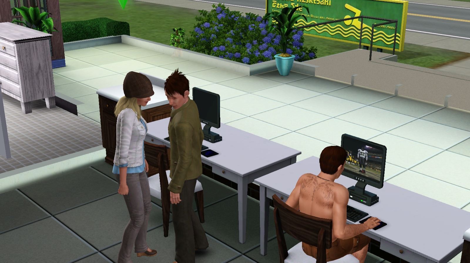 As soon as she gets there she notices someone in the computer room and goes in to greet him. They are instantly attracted to one another. She learns his name is Jules.